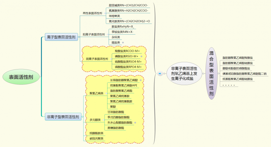 按表面活性劑分子量大小可分為低分子量表面活性劑(相對(duì)分子質(zhì)量200~1000)、中分子量表面活性劑(相對(duì)分子質(zhì)量1000~10000)和高分子量表面活性劑(相對(duì)分子質(zhì)量10000以上)。具體如下圖: